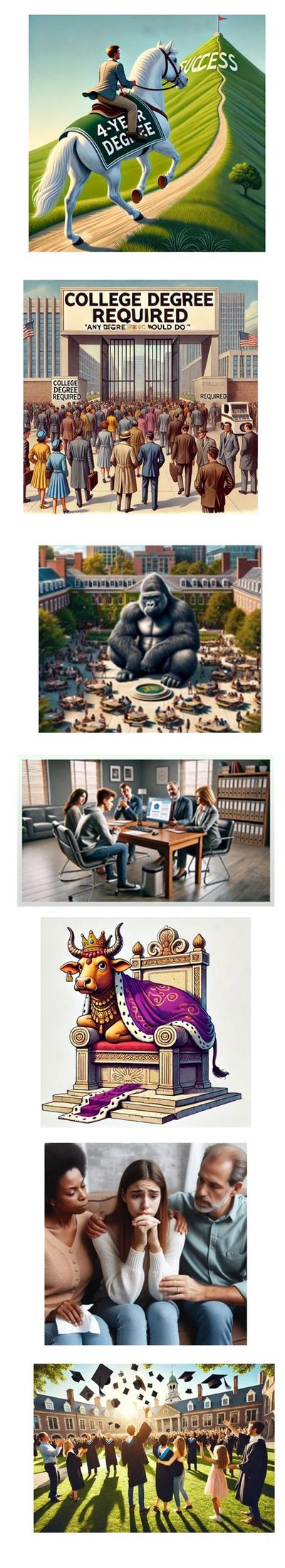 Relevantly, 40% of college degree holders are holding positions that do not require a college degree, often because a non-degree holder found a workplace opportunity and proved worthy of promotion by demonstrated performance in the workplace.